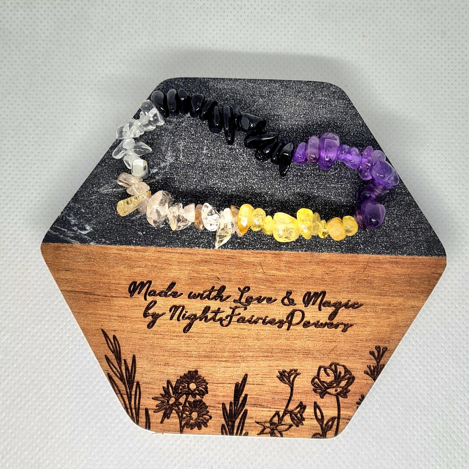 Bracelet For Protection & Good Health: Clear Quartz, Rutilated Quartz, Citrine, Amethyst, Black Tourmaline Please remember to send me note which size of bracelet you need, I can make any 16cm-24cm (6"-9.5") or any other 🧚🏻♀️☀️ Kids 12-15cm Small 16-17cm Medium 18-19cm Large 20-21 XLarge 22-23 XXLarge 24cm