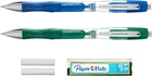 Comfortably create clear, precise lines every time Lead shield technology reduces lead breakage and jamming Comfort grip for added control, and visible lead supply lets you know before you run out Side lead advance lets you load lead without losing your grasp 0.7mm, #2 leads are perfect for standardized tests Includes 2 mechanical pencils in assorted barrel colors, 1 lead refill set (6 leads), and 2 erasers With the feel of a pen and the look and performance of a pencil, the Paper Mate Clearpoint Elite Mechanical Pencil is your clear choice. Featuring an innovative lead shield technology that protects against lead breakage, Clearpoint pencils take the frustration out of writing. The wraparound soft comfort grip causes less stress and strain on your hand while the constant supply of lead provided by the extra-large button gives you uninterrupted performance. The mechanical pencils also feature a smooth eraser that makes quick work of mistakes.