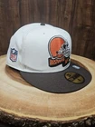 Show your support for the Cleveland Browns with this officially licensed New Era 59Fifty fitted hat cap. Perfect for any fan, this size 8 cap features the iconic Dawg Pound logo and comes in a stylish brown color. Represent your team during regular season games or simply add it to your collection of fan apparel and souvenirs. This cap is a must-have for any true football fan and is perfect for men who want to show their support for the Browns.