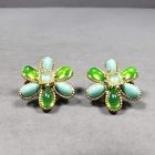 Up for sale is a set of clip on earrings. They are gold tone, green and turquoise in color . They are in good pre owned condition! Please view all posted pictures as they are part of the description. If you have any questions please ask. Please check out my store for more great deals that are listed every day!!