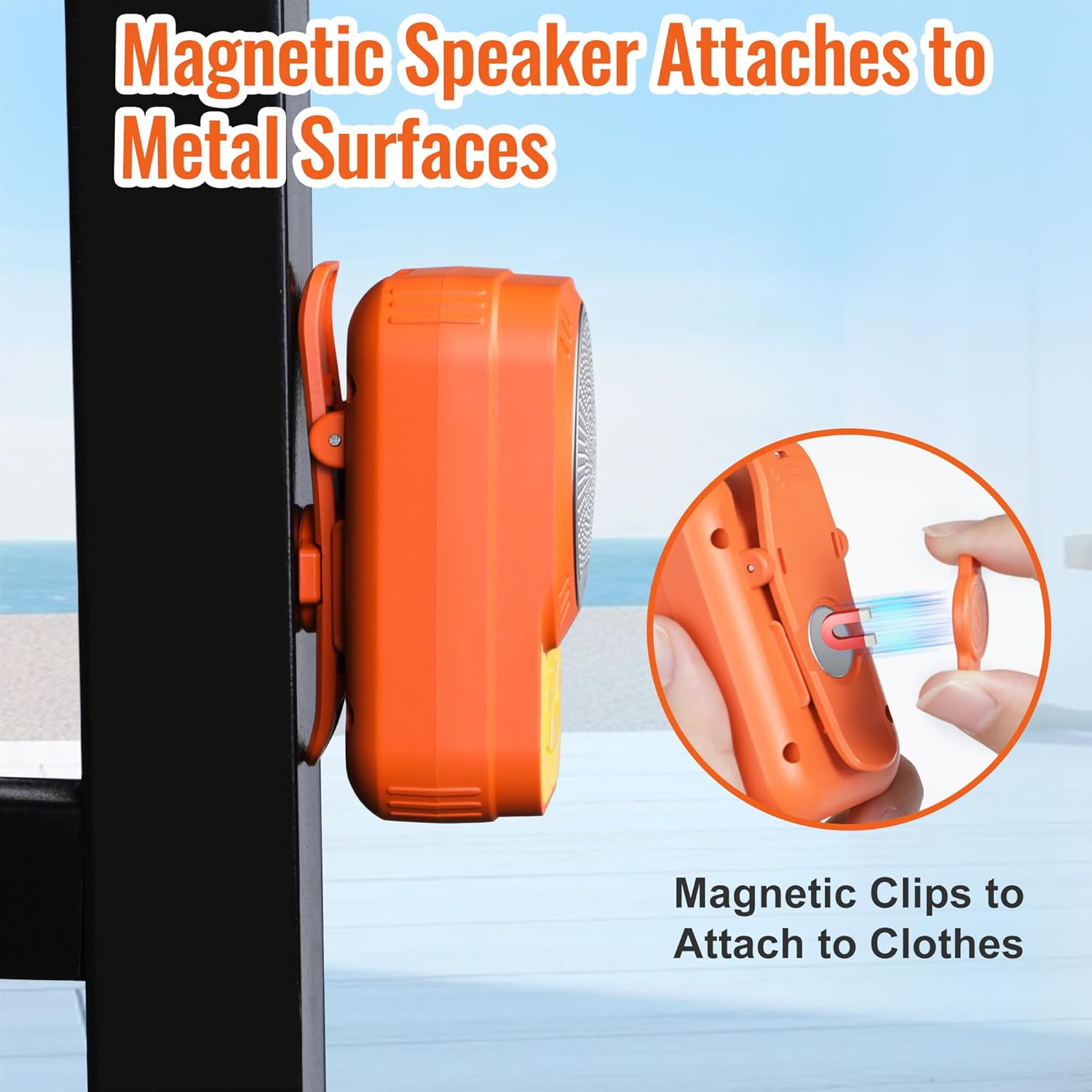 【Portable Bluetooth Speaker】Weighs only 90 grams and up to 15 hours of battery life. Comes with a charging cable and a tf card slot, daily waterproofing 【Multiple Wearing Methods】The Portable Bluetooth Speaker is magnetic, allowing it to adhere to metal surfaces. The clip-on design makes it easy to attach to bags and clothing. It can also be secured to bicycles using straps 【High-quality Sound】It features excellent low, mid, and high-frequency performance, with a natural and smooth sound line. In a given space, it provides a three-dimensional surround sound experience 【Perfect for Any Occasion】Ideal for outdoor sports, work, parties, and travel 【Practical Gift】The clip-on Bluetooth speaker makes a great gift for family and friends, perfect for Christmas, Halloween, and birthday parties Product Description Similar Recommendations Add to Cart Add to Cart Add to Cart Add to Cart Customer Reviews 3.6 out of 5 stars 8 4.0 out of 5 stars 19 3.6 out of 5 stars 8 4.0 out of 5 stars 19 Price $9.99 $ 9 . 99 $9.99 $ 9 . 99 $9.99 $ 9 . 99 $9.99 $ 9 . 99 Clip On Bluetooth Speaker ✔ ✔ ✔ ✔ Magnetic Bluetooth Audio ✔ ✔ ✔ ✔ Bike Speaker ✔ ✔ ✔ ✔ Wearable Bluetooth Speaker ✔ ✔ ✔ ✔ Battery Life Up to 15 hours Up to 15 hours Up to 15 hours Up to 15 hours Waterproofing Basic Basic Basic Basic