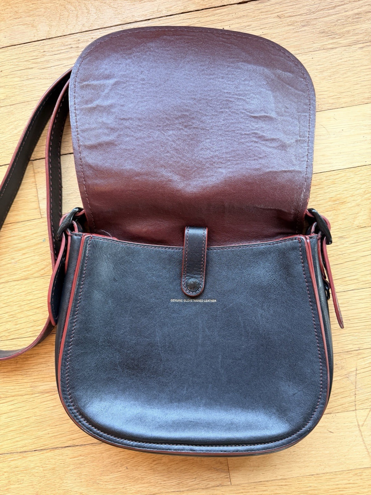 I forgot to include the title tags in the cover photo but please see last photo for them attached Condition: Used - Excellent Pre-owned Condition. This bag has been well-cared for and shows very minimal signs of wear. The glovetanned leather is smooth, and the red contrast stitching is vibrant. Please review all photos, including the interior creed, to verify condition and authenticity. Creed Number: № SD-20115 (Confirmed 1941 Collection serial number as shown in photos) Product Overview Elevate your collection with this premium Coach 1941 Saddle Bag. Launched to celebrate Coach's 75th anniversary, the 1941 line features ultra-premium materials and reimagined archival designs. This bag is crafted from buttery-soft Glovetanned Leather in classic black, made to pop with striking Red Contrast Stitching and edge paint. Features & Details • Collection: Premium Coach 1941 (known for superior craftsmanship) • Material: 100% Genuine Glovetanned Leather—thick, smooth, and durable. • Color: Black with Red accent stitching and piping. • Hardware: Dark Gunmetal / Antique Nickel. • Interior: Luxurious, full leather lining in a rich oxblood/burgundy color. Features an interior zipper pocket and Creed patch. • Design: Classic flap closure with magnetic snap. Minimalist luxury—the focus is on the leather quality and the iconic silhouette. • Strap: Adjustable leather crossbody strap. Measurements (Approximate) • Width: 9" • Height: 8" • Depth: 3" • Strap Drop: 22" (Adjustable) Why the 1941 Collection is Highly Collectible: The Coach 1941 line is distinct from Coach's standard retail and outlet lines. It was a limited-run collection designed to showcase heritage. The leather is significantly thicker and more refined (akin to original baseball glove leather), the hardware is heavier, and the interior is fully leather-lined, making these bags very durable and sought after by collectors.