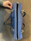 The Coach Blue Shoulder Bag is a stylish and classic accessory for women, featuring a solid blue exterior with a pebbled finish and silver hardware accents. The rectangular shape and zip closure make it practical for everyday use, while the blue leather shoulder strap adds a touch of elegance. The bag also includes inner and outer pockets for added functionality. Perfect for adding a touch of designer flair to any outfit, this Coach bag is a versatile and timeless piece for any fashion-forward woman.