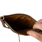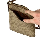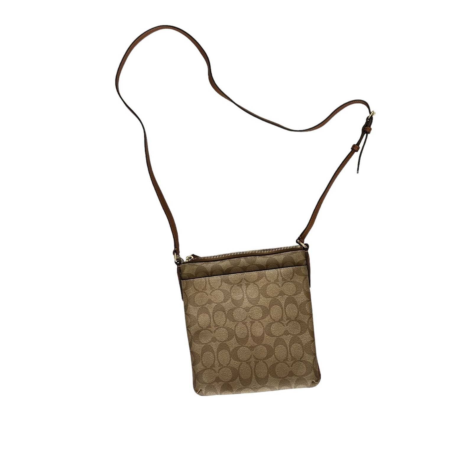 Coach Crossbody Bag Brown Leather Logo Pattern Womens Adjustable Leather Strap Size: Small Women's Condition: Excellent & Clean - In very good pre-owned condition. Fabric Content: Canvas & Leather Measurements are approximate.