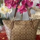 Coach Brown Logo Gold Hardware Women's Shoulder Tote Inner Pockets Large