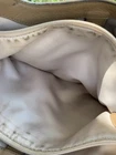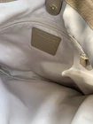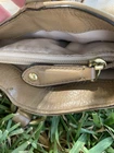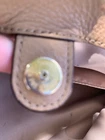 The outside of the bag is in very good condition with only a little scratches on the top front(pictures zoom in). The compartments on the inside have a few pen marks and stained(pictures). Overall a nice larger handbag. Magnetic buttons and zippers in good shape.