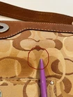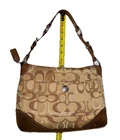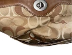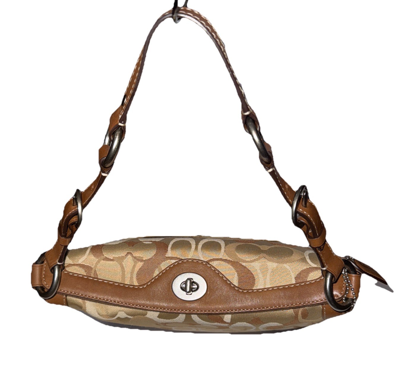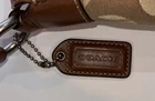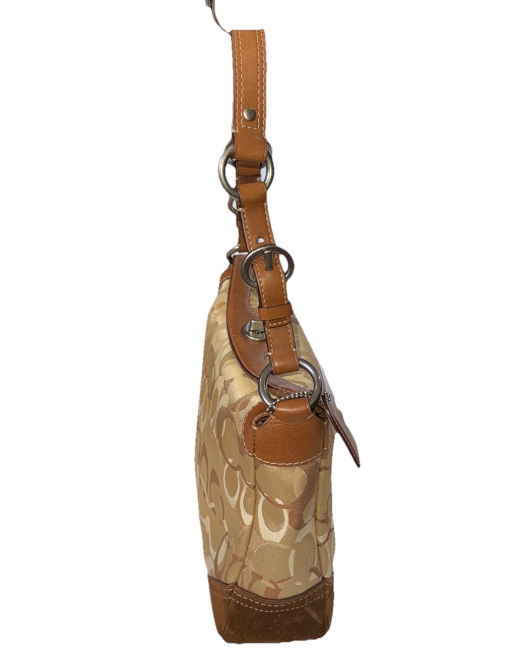 This beautiful Camel, Tan & Cream shoulder bag from Coach’s Chelsea Signature Optic collection is the perfect addition to any woman’s wardrobe. The canvas exterior boasts the classic Coach C design with luxurious caramel suede bottom and caramel leather trim. The bag is spacious enough to hold all your essentials and comes with a comfortable leather strap for easy carrying. This stylish Coach bag’s quality craftsmanship and high quality materials means it is made to last and retain its beautiful appearance. It is a perfect choice for everyday use as well travel, workwear, business meetings and casual get-togethers. This classic Coach design features: - a rectangular shaped - fold over top with turn lock - a single caramel leather handle/strap - silver buckles and rings on the strap - silver hardware accents and studs - Coach bag charm - exterior front slip pocket with Coach medallion - interior back wall zipper pocket - interior front wall slip pockets (2) - matte finish Although pre-owned, this bag is in excellent condition. The bag is clean with no rips or flaws. There is no sign of wear on the canvas, leather, suede or fabric inside or out. The turn lock and zipper work smoothly and stay secure. There are 2 faint stains on the front and one stain on the back inside flap. Please see the photos for more details. New dust bag included.