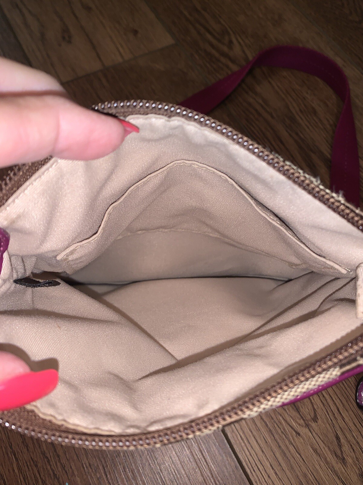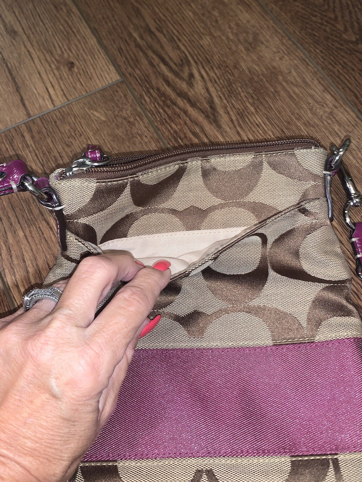 Coach: Crossbody Bag Traditional w/ Coral Strap: 2 Small Spots Inside Strap