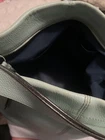 As is - as shown. Please ask any needed questions:) Beautiful mint green color. LOTS of life left in this purse. Smoke and smell and stain free. Strap is in great condition. Mostly the corners and a little on top (the discoloration) are the issues.