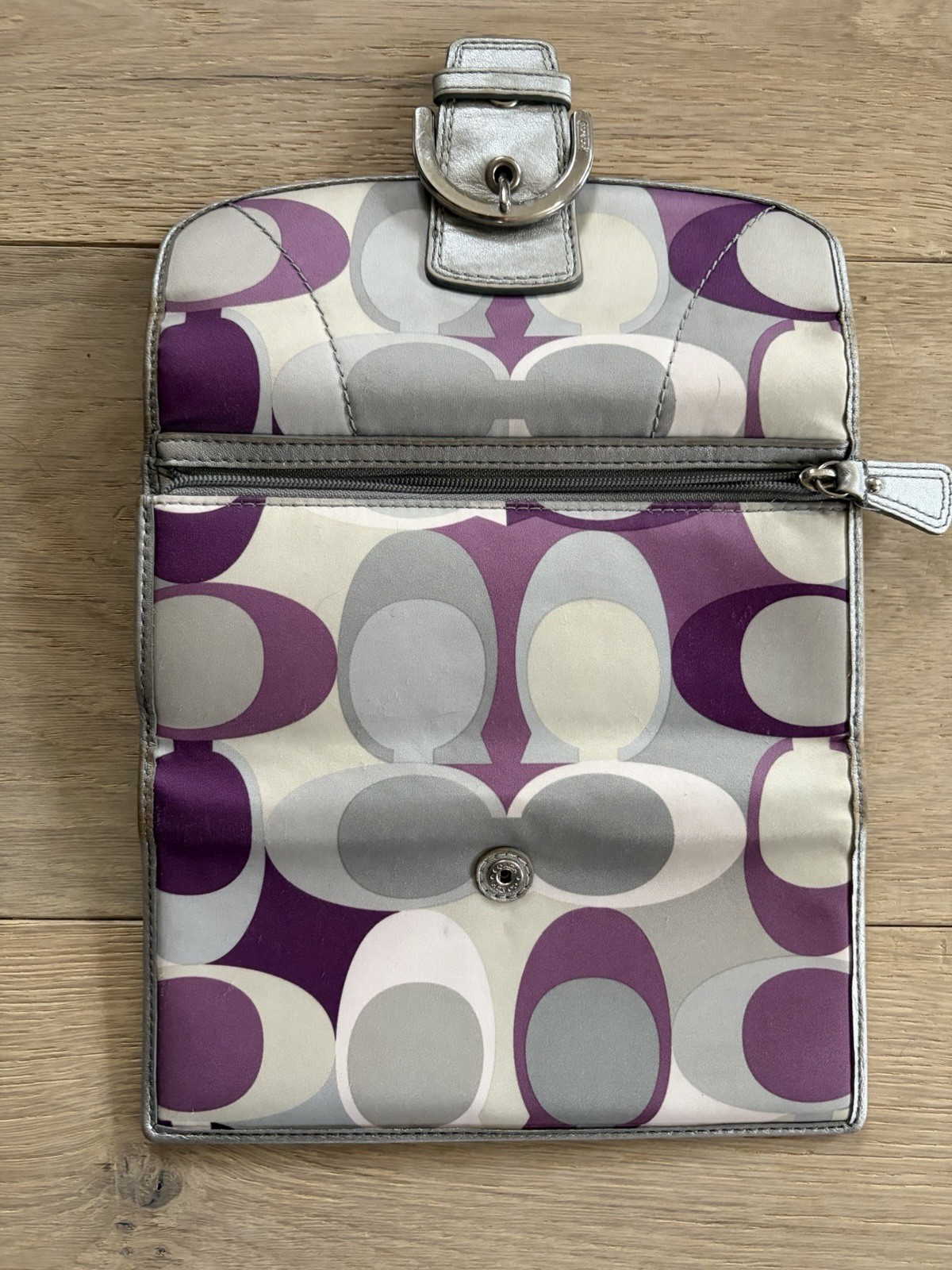 Good pre owned condition. Purse interior is clean, small spot in the wallet change section. Purse is pre owned, exterior is clean but it is used (one small spot in front corner pictured). Smoke free home. Price includes purse and wallet.