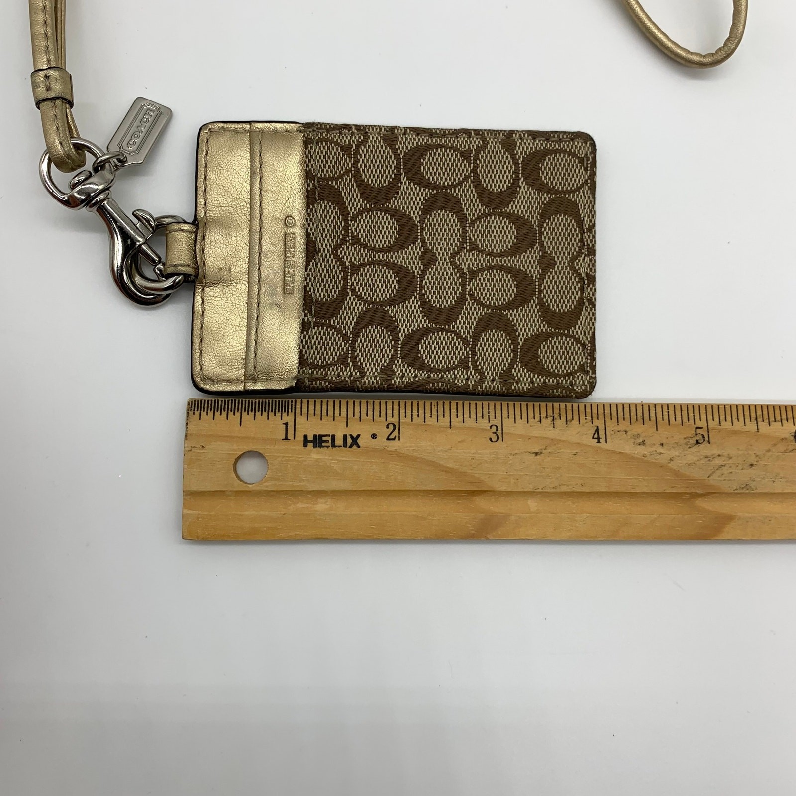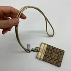 Coach Card Holder Keychain Neck Strap Gold Metallic Color - Neck Strap 16" long - 4" x 2"