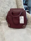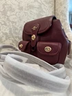 The Coach Hadley Backpack in Pebble Leather is a stylish and practical accessory for women. With a solid rectangular shape and a turn lock closure, this small backpack features a top handle and gold hardware accents. The pebbled leather exterior in dark wine color with a dark wine fabric lining adds a touch of classic designer appeal. Perfect for casual occasions, this backpack includes an adjustable strap, pockets for organization, and comes with the original packaging. Ideal for everyday use, the Coach Hadley Backpack combines fashion and functionality in one timeless piece. Style Number: CBH09 Measurements: Length: 9.0" Height: 8.0" Width: 5.0" Materials: Refined pebble leather and smooth leather Fabric lining Handle: Top handle with 2.25" drop Strap: Detachable shoulder straps with 34.25" length Features: Outside turnlock pockets, Inside zip and multifunction pockets, Drawstring and turnlock closures.