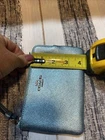 SV/Metallic sky blue Coach Wristlet wallet with original Tag and care instructions .
