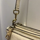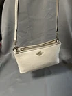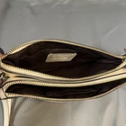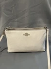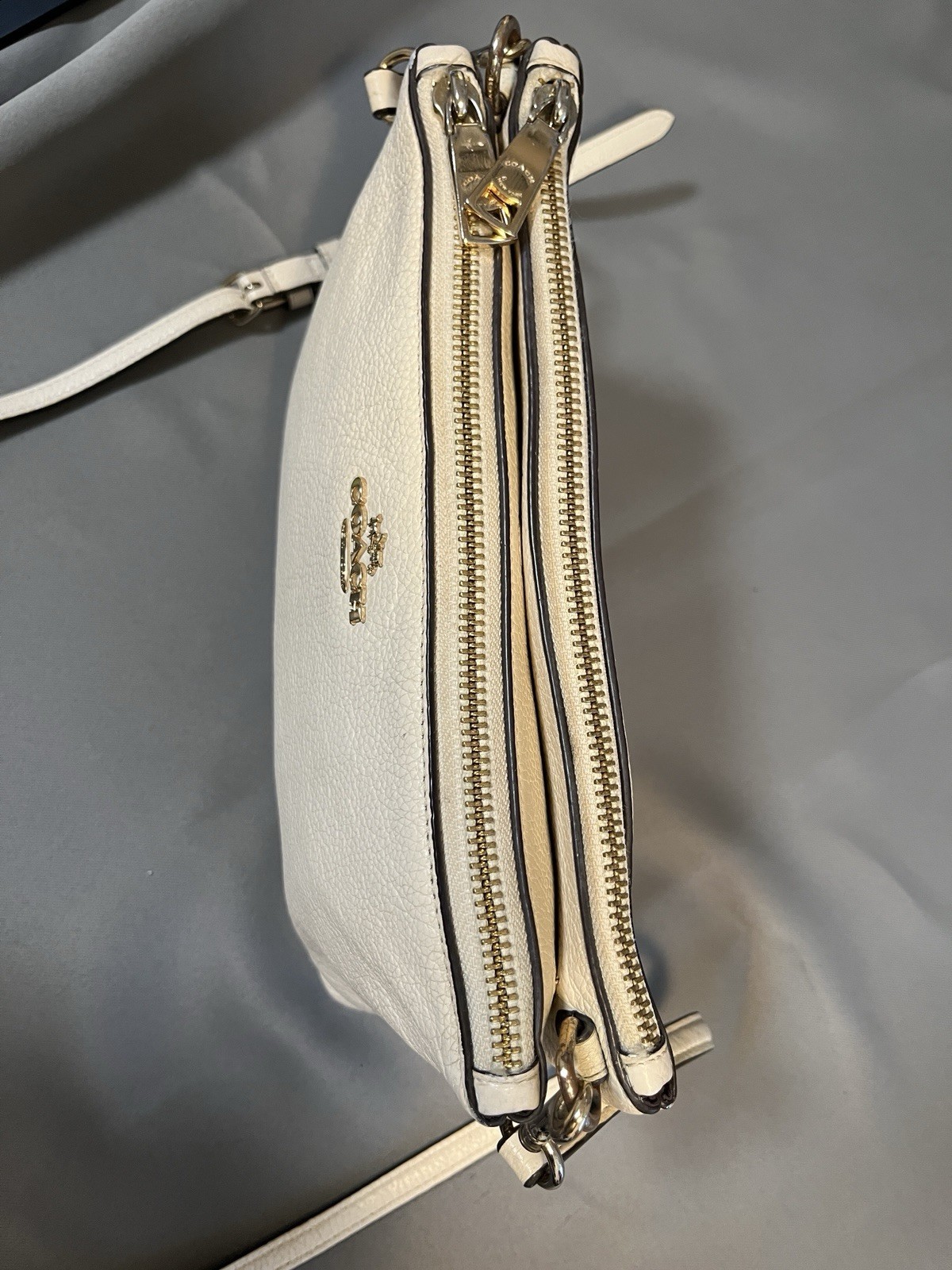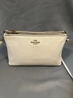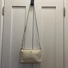Beautiful Coach Pebbled Leather Double Zip Crossbody in the color Chalk/Cream with gold-tone hardware. This style features two full zip compartments, an adjustable strap, and soft grained leather — perfect for everyday essentials. Please note: Bag is in very good used condition with some discoloration on the hardware (shown in photos). Leather is clean with light wear. Zippers work smoothly. Interior is clean. ✨ Features Style No. F38273 Color: Chalk / Cream Soft pebbled leather Double zip compartments Interior slip pocket Adjustable crossbody strap Gold-tone hardware Coach logo at front Creed patch inside 📏 Measurements (From your tape photos) Length: 10” Height: 6" Strap Drop: Adjustable (20-23”) 📦 Condition Leather: Clean, light wear, no rips Corners: Minimal wear Interior: Clean Zippers: Work perfectly Hardware discoloration / tarnish present (see close-ups) Smoke-free home Ships fast & securely. Offers welcome!