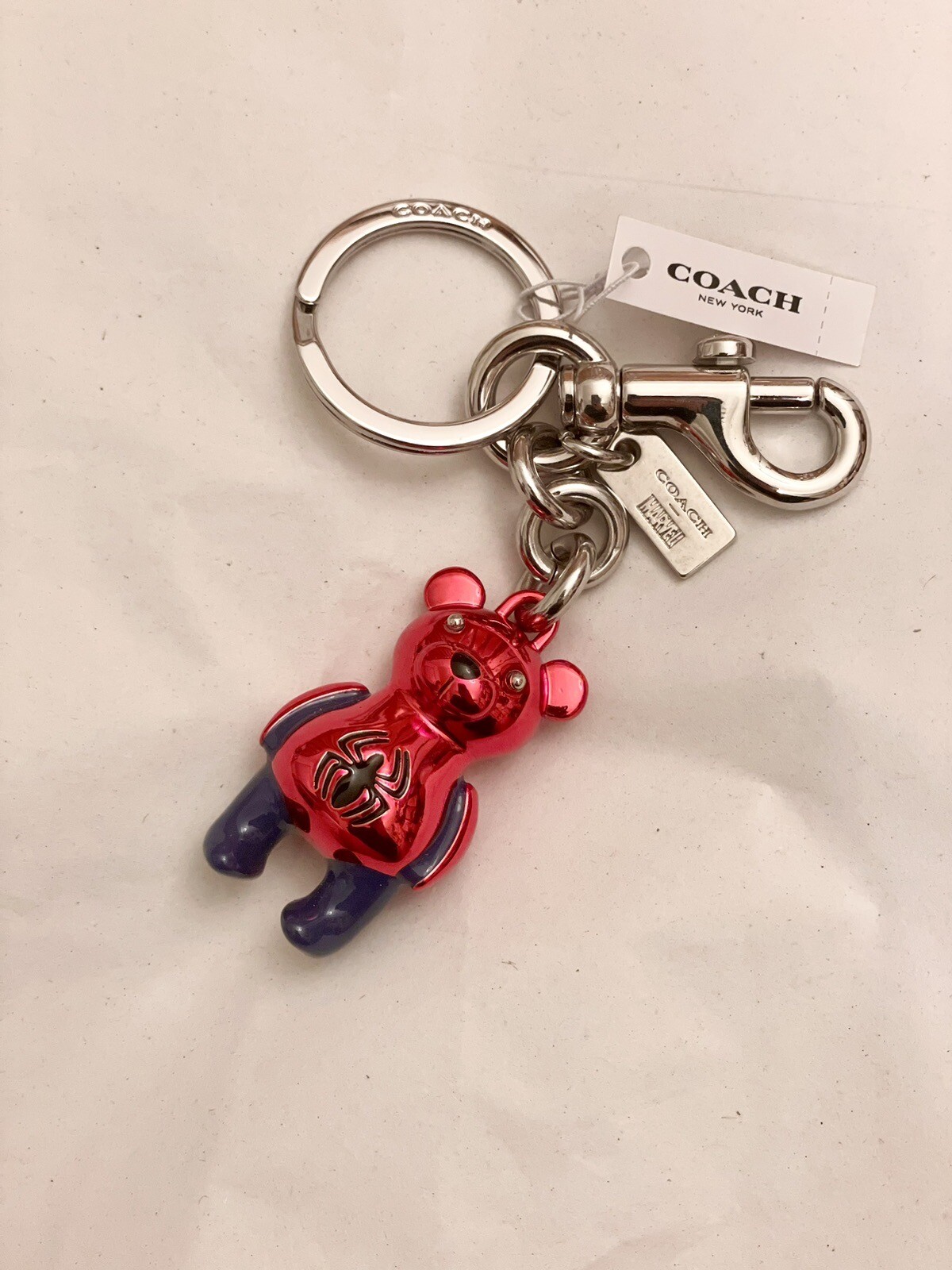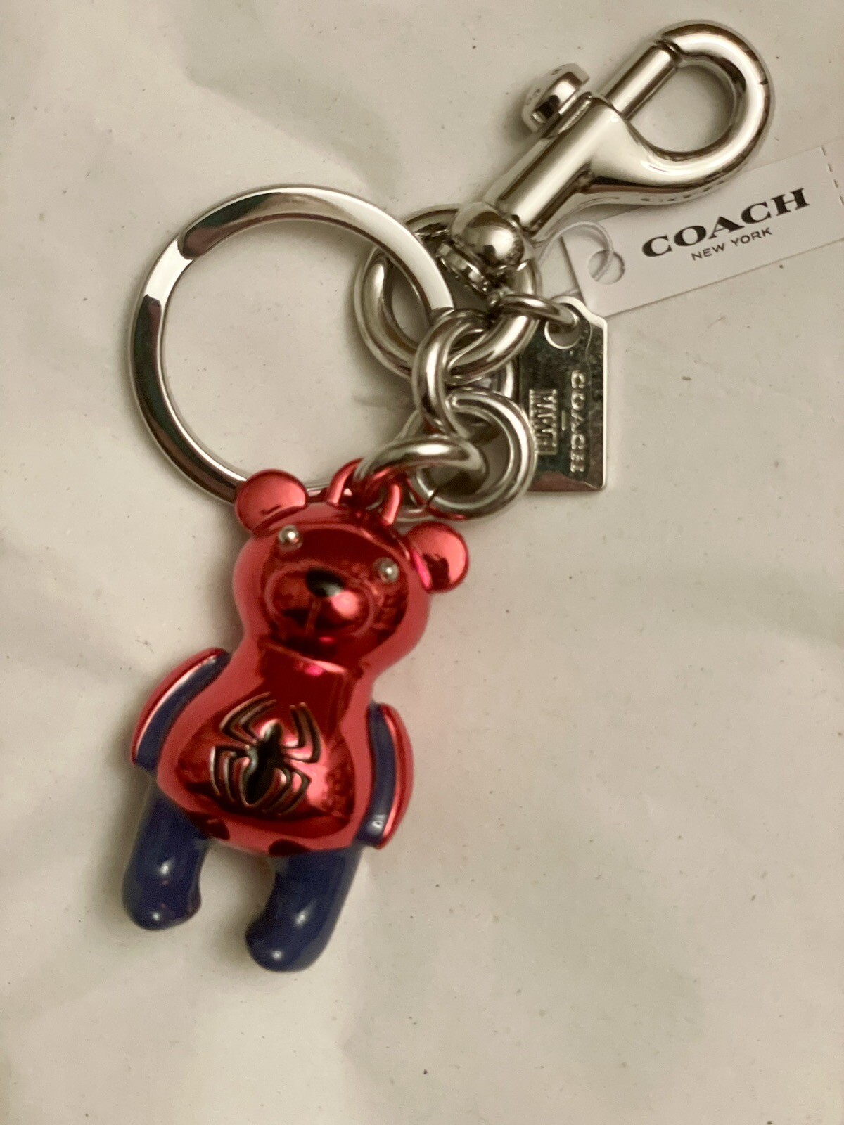 Coach Marvel Spider Man Bear Bag Charm Brand new with tags Limited edition Color: Silver/Bluejay/Red Metal and enamel Attached split key ring and dogleash clip Size: 1" (L) x 1 3/4" (H) COACH MARVEL| © 2020 MARVEL Style No. 2754 Price is firm