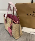 Coach Mollie Tote Bag 25 Signature Canvas With Heart Charm Sand Peony CDF03 NWT Style Number: CDF03 Measurements: Length 25 cm x Height 19 cm x Width 12.5 cm