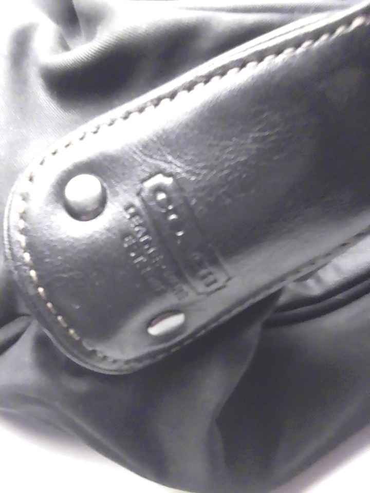 The Coach Shoulder Bag is a stylish and versatile accessory for women. Made with a durable canvas exterior in a sleek black color, this medium-sized bag features a convenient shoulder strap handle style and a comfortable fabric lining in beige. The bag is accented with silver hardware and includes practical inner pockets for organization. With the iconic Coach brand and designer theme, this shoulder bag is a fashionable choice for everyday use.