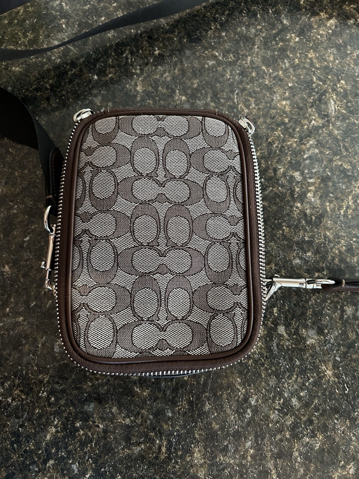 New in bag with tags. Pictures shown are same bag style but actual bag is still in a separate plastic sealed bag. Mocha brown color with strap and silver metal clips. Roughly 9”x 7” in size. Selling for a friend that accidentally bought three of the same bag. Any questions please ask and thanks for looking.