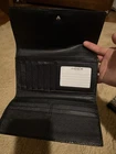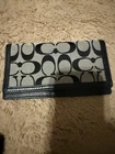 The Coach Signature Logo Black Gray Shoulder Bag with Wallet Set for Women is a stylish and high-quality handbag designed for casual occasions. The rectangular bag features a snap closure, a black shoulder strap handle, and silver hardware accents. Made of canvas and leather exterior materials with black and gray exterior colors, the bag also includes stitching and logo accents. The set also includes a wallet, making it a convenient and fashionable accessory for any woman's wardrobe. Coach matching set in black and grey signature print. Includes: • Medium tote bag with leather trim • Matching wallet • Matching checkbook/passport holder Condition: Very good, clean, and well cared for Brand: Coach Colors: Black & grey Great everyday set or gift.