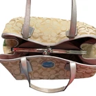 Coach Signature Stripe Multicolor Patchwork Tote Rainbow Minimalist Retro F17444 FLAWS (noted in photos) -Item has a few marks on the patent leather colored blocks. -The center kiss-lock pocket took the brunt of use on this bag, but only in discoloration. It’s discolored at the top and also inside the pocket. Can’t be seen when kiss is locked. -Does not have any additional accessories/charms. The bag is in otherwise great pre-loved condition. Our items are all carefully examined, photographed, and stored in a smoke-free environment. Your satisfaction is our priority, and we want to ensure transparency in every transaction. Please don’t hesitate to ask any questions you may have. Diaper bag, luxury, utility, casual, everyday, travel, status