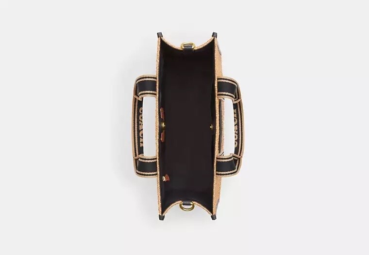 The Coach Smith Tote Bag Style CAL88 is a large black straw tote with a fabric lining. It features a black canvas handle/strap, cross-body strap, and outer pockets for added convenience. With a bag width of 5 inches and a height of 10 inches, this stylish Coach tote is perfect for women looking for a versatile and practical handbag to carry their essentials. The timeless design and quality materials make it a must-have accessory for any wardrobe.