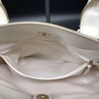 Absolutely love this bag! The ivory leather with gold hardware looks so chic and elegant. It's surprisingly spacious with plenty of pockets to keep everything organized. The two-way carry option makes it super versatile for any occasion. Even with some corner wear, it's in great pre-loved condition and came with the dust bag. A fantastic value for such a stylish Coach piece!