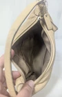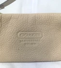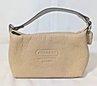 Coach Tan Pebbled Leather Baguette Pouch Small Hobo handbag This handbag is in good, pre-owned condition. There is normal wear and tear from normal usage. The most noticeable is along the edges of the strap *please see photos*. The lining is in good condition. The exterior leather is in good condition with a small blemish on the front *see photos*. There may be some other small scratches or blemishes from normal usage that were missed upon inspection. There are smudges on the handle, side, and the bottom (it is hard to see in the photos). This handbag measures approximately: 8 inches wide 5 inches high (8 including the handle) 3 inches deep From smoke free, pet friendly home.