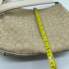 Step out in style with this amazing Coach Y2K hobo bag! This retro-inspired bag features a beautiful khaki and white jacquard pattern, complemented by genuine leather trim. Perfect for adding a touch of vintage charm to any outfit. Features: - Brand: Coach - Style: Hobo/Shoulder Bag - Era: Y2K - Color: Khaki and White - Material: Jacquard fabric with Leather trim Measurements as pictured. In great pre-owned condition, see photos for more details. Always feel free to ask any questions you may have! Reasonable offers accepted. y2k, retro, jacquard, leather, logo, hobo, shoulder bag