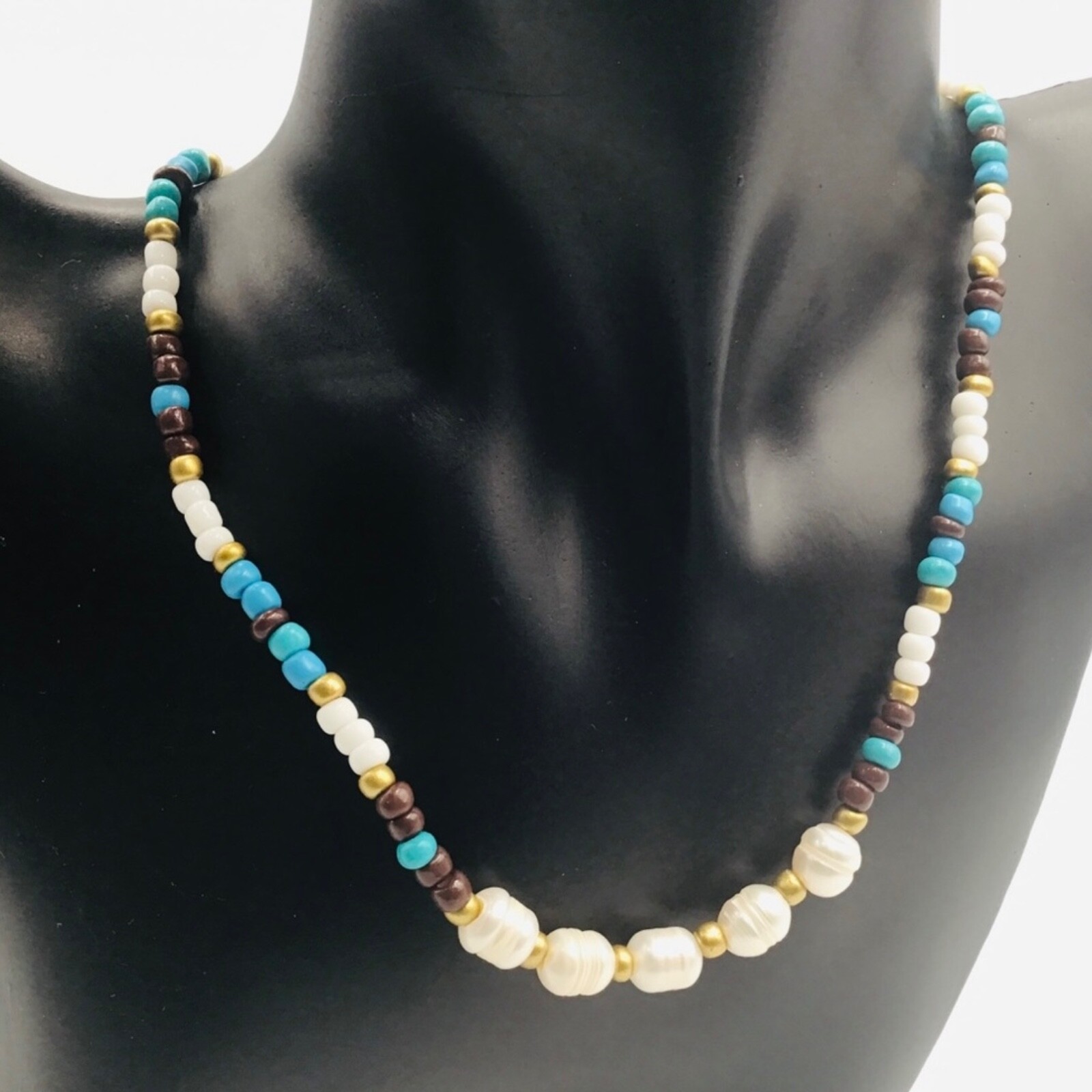 Beachy Boho Necklace Fresh Water Pearl Coastal Minimalist Blue White Brown ▪️New ▪️Grateful Times ▪️Handcrafted Jewelry ▪️Necklace ▪️Adjustable Chain with Lobster Clasp ▪️Fresh Water Pearls ▪️Glass Seed Beads ▪️Gold Tone findings ▪️Boho Coastal style ▪️Teal Blue, Gold, Brown, and White colors ▪️Approximate Flat Measurements: ▪️about 18”, adjustable with chain on trend fall winter 2021 party prom dance wedding festival concert work date retro costume jewelry jeans dress boots cute casual holiday gift present teacher spring summer flower power retro 60’s 70’s 80’s teen stocking stuffer birthday Christmas chakra good vibes energy bohemian ocean sea beach minimalist surf hippie 🌻Thank you for stopping by my eBay store! Combine items to save on shipping. Please message me if you have any questions, I’m happy to answer any you may have. I ship the same/next day, as soon as payment is received⚡️ ❤️Save our store in your favorites to receive future sale promotions, discounts, and coupons! Thanks again, ⭐️⭐️⭐️⭐️⭐️ Tiffany @grateful_times