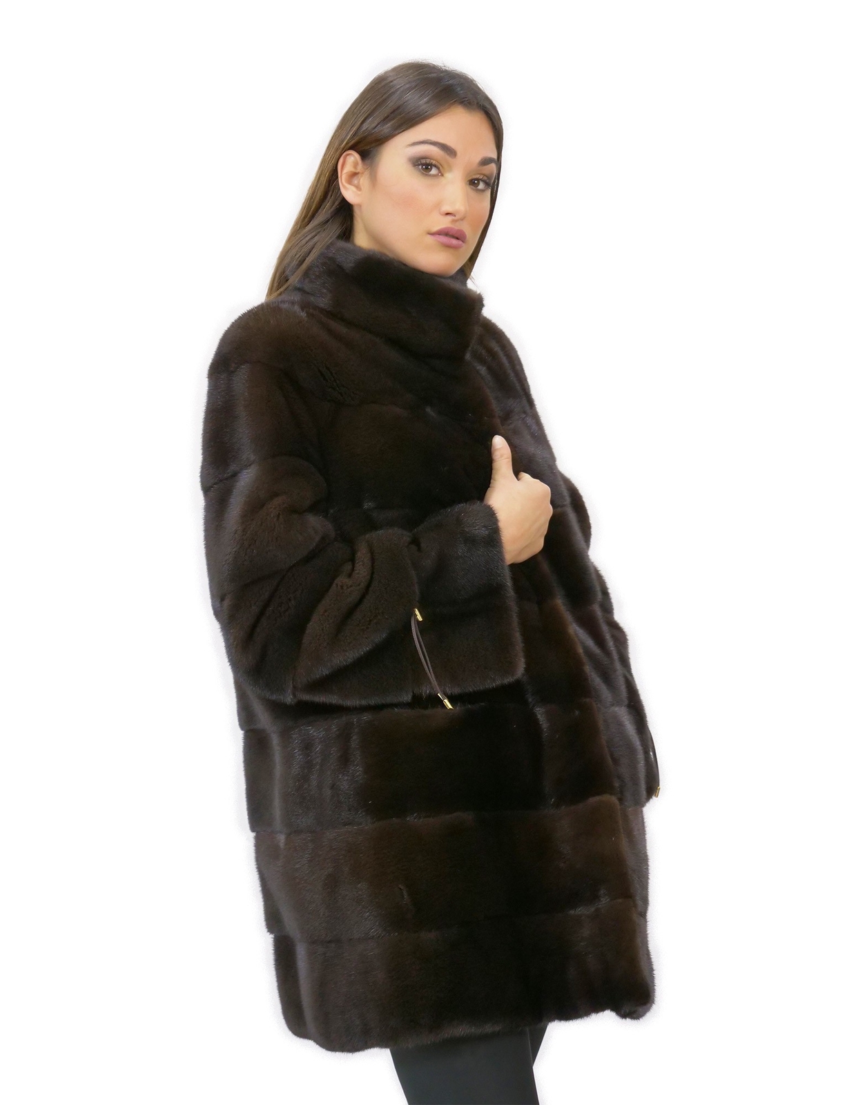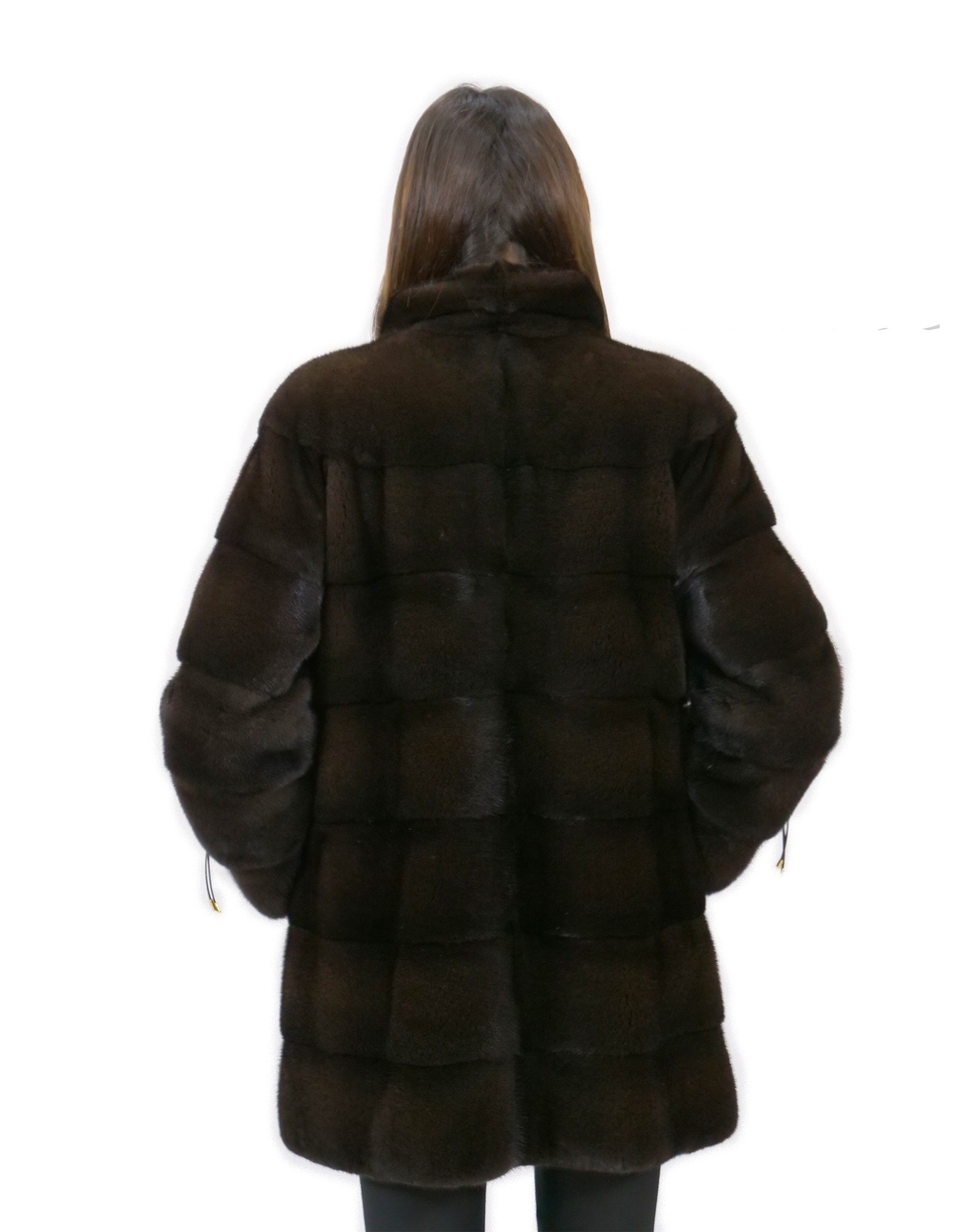 70cm Horizontal Mink Jacket with Fur Hood in Scanbrown Size 52