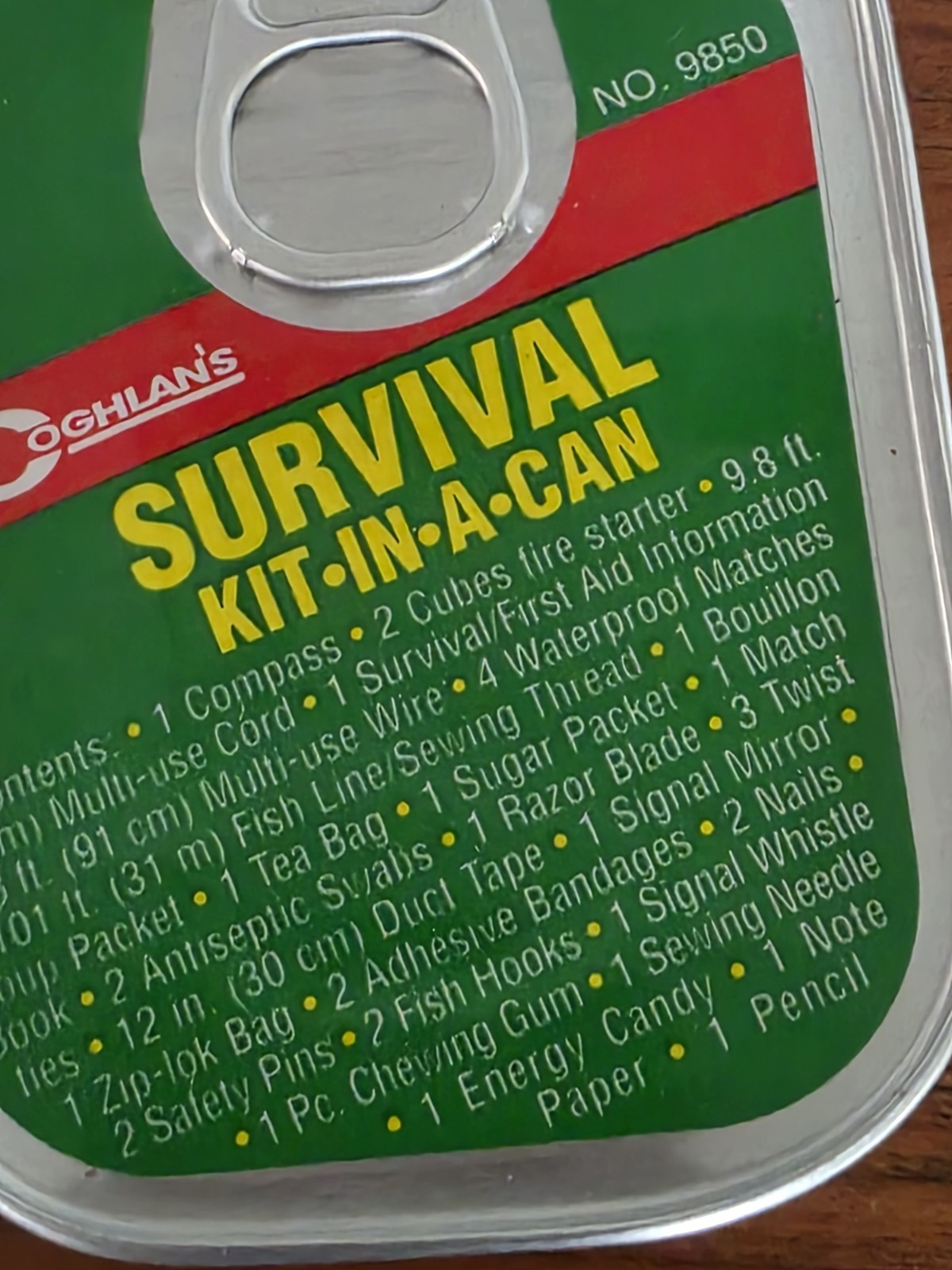 The Coghlan's Outdoor Survival Kit-In-A-Can is a versatile and lightweight survival kit designed for outdoor enthusiasts like backpackers, hunters, campers, and hikers. Made from durable tin material, this kit contains essential tools and supplies for various outdoor activities. The silver color adds a sleek and practical touch to this compact survival kit, making it easy to carry and use in emergency situations. With a vintage design and a cautionary California Prop 65 warning, this kit is a reliable companion for anyone looking to thrive in the great outdoors.