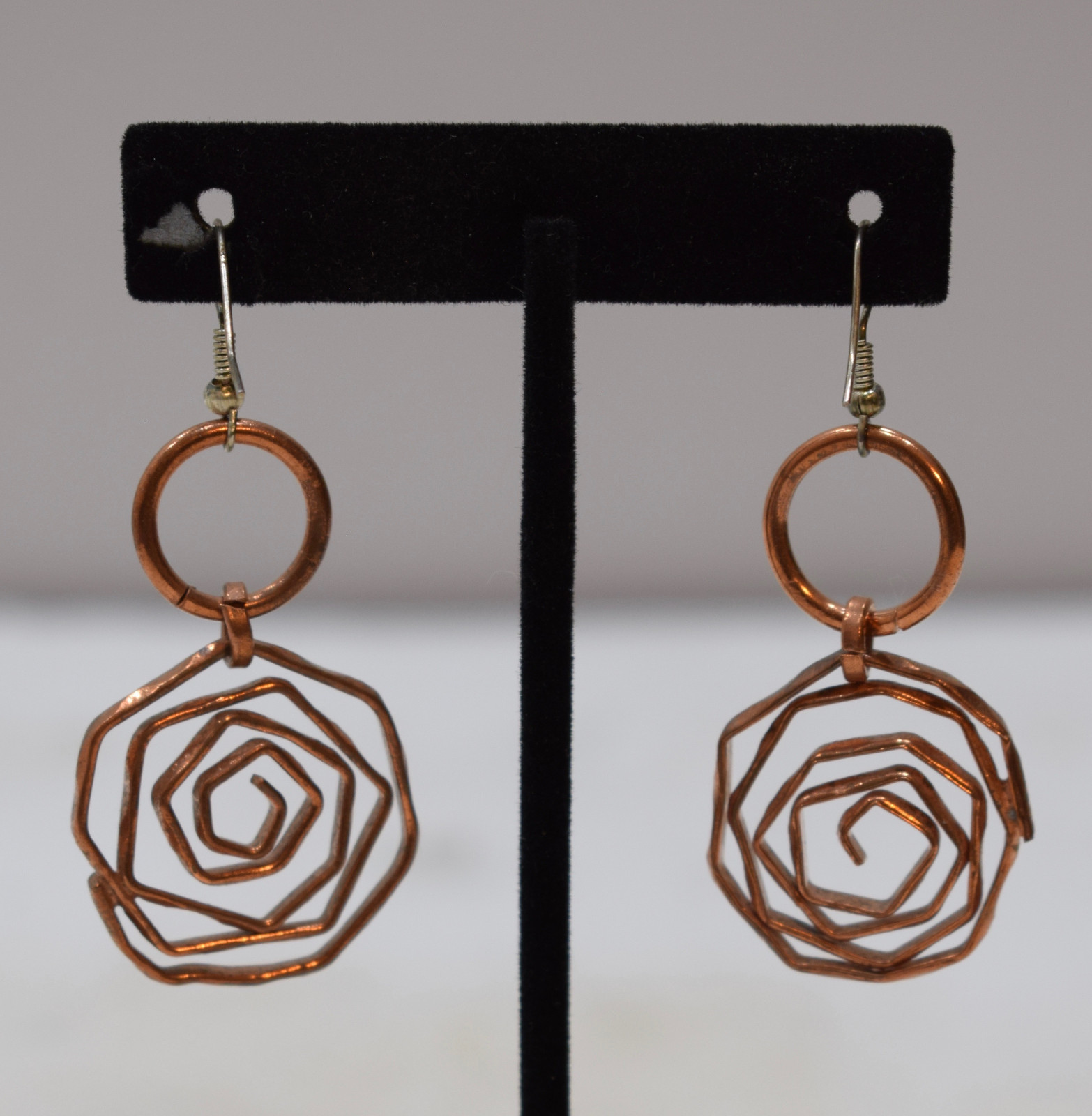 This is a beautiful Pair of Plated Copper Textured Round Coiled Dangle Earrings. This earring is lightweight, fun to wear and and would make a wonderful gift for that someone special. 58mm Long 12mm Wide AT BACARA WE STAND BEHIND ALL OF OUR MERCHANDISE. FULL MONEY BACK GUARANTEE WILL BE PROVIDED FOR DISSATISFIED CUSTOMERS. YOUR SATISFACTION IS OUR MAIN GOAL, AND WE THANK YOU FOR SHOPPING AT BACARA. #78