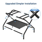 Strong Stability -- This luggage rack is built with anti-wear materials and a reinforced metal steel frame for durability. The luggage rack has a sturdy structure and 4 nylon belts; The suitcase holder is sturdy and can withstand up to 200 pounds; Adjustable feet improve stability and balance, prevents items from falling and protects floors. Practical Design -- Luggage Stand has double compartments provide more storage space for suitcases, bags, shoes, and other items. The underlying fabric layer also has small strings that allow you to roll up the fabric layer so that it can be folded up with maximum space when not in use. Multi Function -- This durable luggage Holder is perfect for an alternate bedroom or hotel for guests to pack or unpack their luggage. Not only can you use it to organize and your luggage, and put your shoes on them, but you can also use it to dry clothes or towels. Saving Your Back -- Use this Suitcase Stand to make your guests' stay more comfortable. It keeps luggage off the floor, preventing you or your guests from bending over to the floor to take things out after a tiring journey, making packing and unpacking for travel easier. Easy Install -- You can find all the necessary accessories in the package and can install them yourself according to the instructions without using any additional tools. It only takes person 5-10 minutes to install a Luggage Racks .