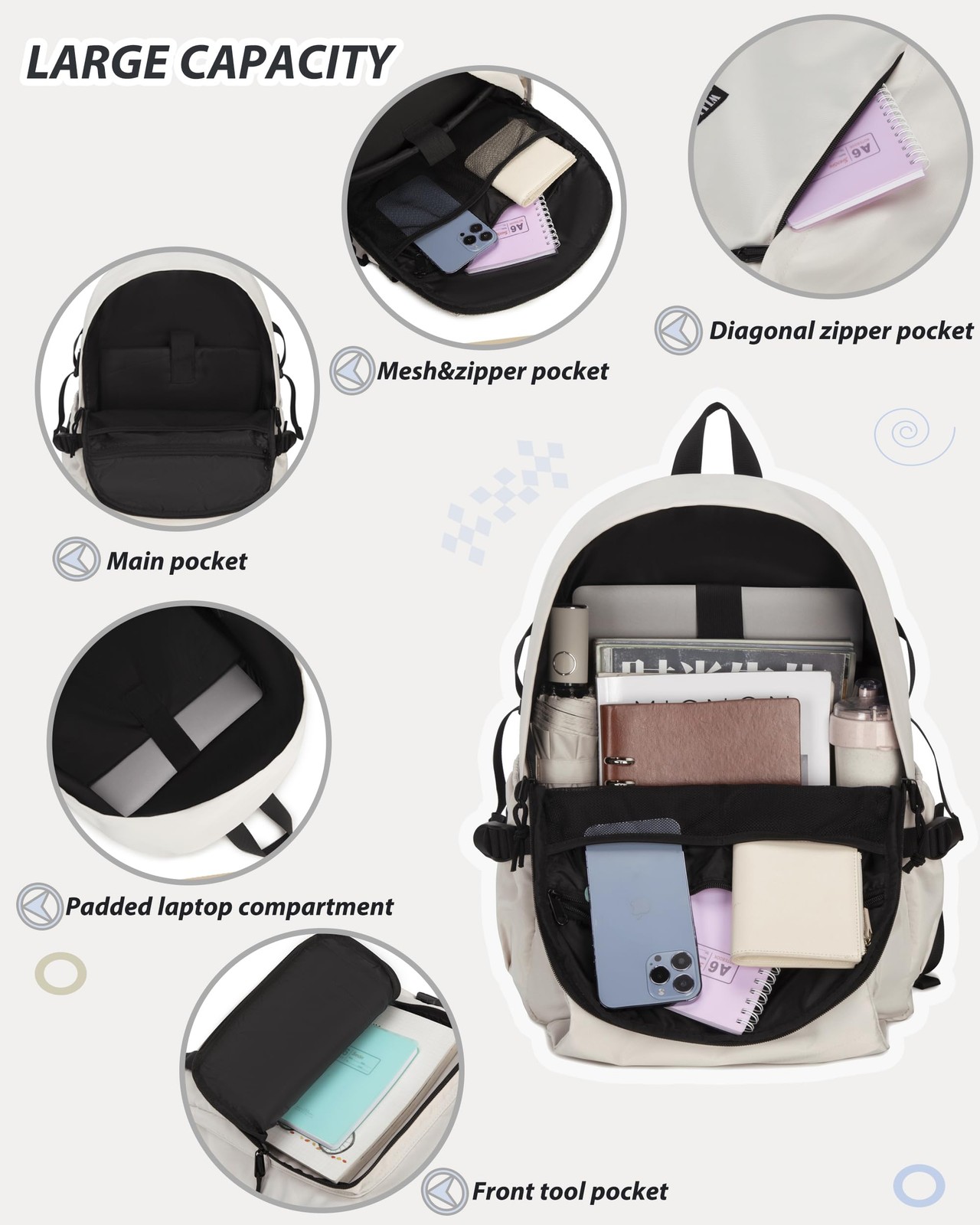 laptop backpack 【Large Size 】The size of girls computer backpack is 12.2"x5.9"x17.5"(L*W*H), Weight:1.65LB. The laptops bag with padded compartment sleeve fit tablet from 14 to16 inch. This back pack also along with white bear plush doll key pendant makes the schoolbag more fashionable and unique Waterproof Material &Smooth Zipper】The campus backpack is made of water-resistant, ultra-lightweight, high density Oxford .The metal zippers closure are used by the premium quality zippers to ensure the long-lasting usage 【Safety & Comfortable 】The considerate belt on the both side of this adult knapsack can create a solid base of support if you’re packing a lot of stuffs on the bagsack. The thicken durable S-shape straps is well-padded, adjustable and comfortable to carry. The luggage belt on the back can be fitted on luggage/suitcase to make your travel more convenience 【Multi-compartments&Large Capacity】The large kids elementary bookbag has 6 separate different size pockets. The exterior easy access diagonal zipper pocket is for tissues,keys,etc.Front zipper pockets can hold charge device and other necessaries.The main compartment includes laptop padded sleeve with tool pockets.The back hidden zipper pocket protects your valuable items from thieves.Elastic pockets on both sides are expandable to hold water bottles and compact umbrellas for your daily storage 【For Any Ages & Occasion】The lightweight backpacking purse is stylish enough for casual use, while the design provides the multi functionality.The basic multipurpose daypacks for most of your needs, easy to match your cloths, suitable for short trip, work, shopping, university, school,business travel,etc.It is the Best Ideas for birthday,Valentine,Thanksgiving,carnival, fair prizes,graduation, Father's Day,Christmas,Valentine's Day. Tips:Our factory optimized material of backpack(especially shoulder strap) and reinforced stitching.