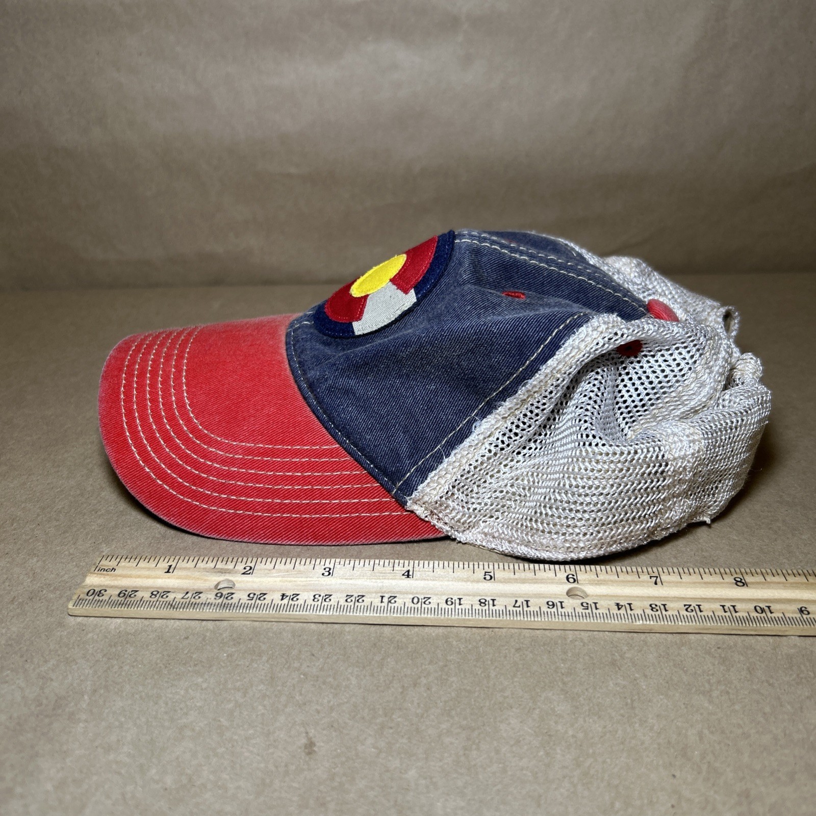 Show off your Colorado pride with this stylish snapback hat featuring the state flag design on the back. The mesh back adds a trendy touch while the adjustable fit ensures a comfortable wear. Perfect for traveling, casual outings, or parties, this hat is a versatile accessory for any man's wardrobe. Made from a blend of polyester and cotton, this hat is durable and easy to care for, making it a practical and fashionable choice for all occasions. See pics for wear