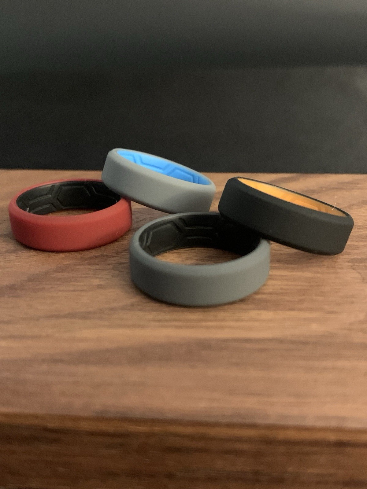 Crafted for comfort and durability, this set of four silicone wedding band rings is designed to suit any occasion, from active wear to special celebrations. With a classic band width of 8 mm, these rings come in a variety of colors including black, red, gray, and dark gray, offering a subtle yet stylish accompaniment to your daily attire. The unbranded rings cater to men's ring size 12 and are made from high-quality silicone, making them an ideal choice for those who value both style and practicality. Whether you're commemorating an anniversary, a birthday, or simply wanting to add a touch of class to your sports or wedding ring, this versatile set is sure to meet your needs.