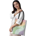 Colorful 'Believe' Tote Bag - Reusable Daily Carry, Gift Shopping Bag 100% polyester construction for superior durability. Medium-weight fabric (6.49 oz/yd² or 200 g/m²) perfect for everyday use. Spacious interior with a large storage compartment. Different sizes to suit your daily needs. This tote bag is designed to be your daily companion that expresses your interests and personality. Get yours today!