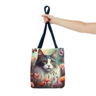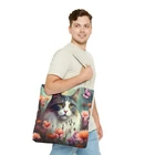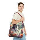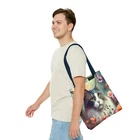 Great Tote bag available in three sizes: small 13x13 inches, medium 16x16 inches or large 18x18 inches, measured flat. 100% Polyester Boxed corners Black inner stitching, transparent thread on hems. cotton handles available in 5 colors Image on both sides Colors may slighlty vary due to your monitor settings. Printed to order in USA, please allow production time before shipping.