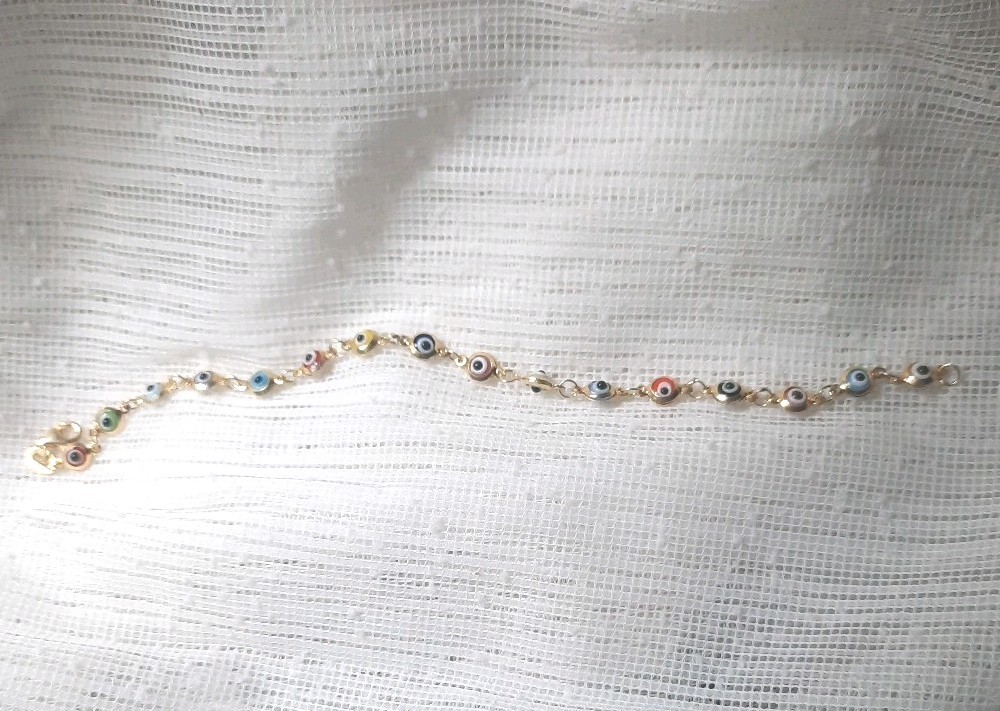 This Colorful Evil Eye bracelet is 7 inches in length and made of 925 sterling silver. It features a spring ring closure and a beaded charm type with multicolor main stones. The bracelet is theme of safe protection against bad luck and bears the Evil Eye brand. Perfect for all occasions, this unique piece is a stylish accessory that can add a touch of fortune to any outfit.