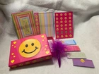 Happy Face Box of Stationery Hello, Welcome to my store: Clutter Kingdom Up for sale: Happy Face Box of Stationery 10--Envelopes Post-Its Stickers and Pen 20--Stationery Sheets 1--Sticker Sheet 4--Mini Sticky Notepads 1--Feather Pen but Pen DOES NOT WRITE it is cute though. Previously owned nothing was used out of it but clear wrap was removed from box. The pen no longer writes or atleast I could not get it to work. Approx. Measurements of box: 5-1/2" x 4" x 1" Please see listing and pictures, pictures are part of the description and should be viewed carefully prior to purchasing for item condition, Thank-you! General Information: All items are previously owned unless otherwise mentioned. All Sales are final! Please read description carefully and fully, ask questions before bidding, Please see all photos/pictures as they are there to help show description of items, study pictures, ask for more pictures if necessary, prior to placing bid to avoid any disappointment, be specific. Shipping: I ship on Monday, Wednesday & Friday~~ONLY! I do not ship on weekends. I do package with recycled materials whenever possible. Please, take time to...Visit my Store, "Clutter Kingdom" and browse through my other items, Thanks for looking!!~~Have a Great Day!!
