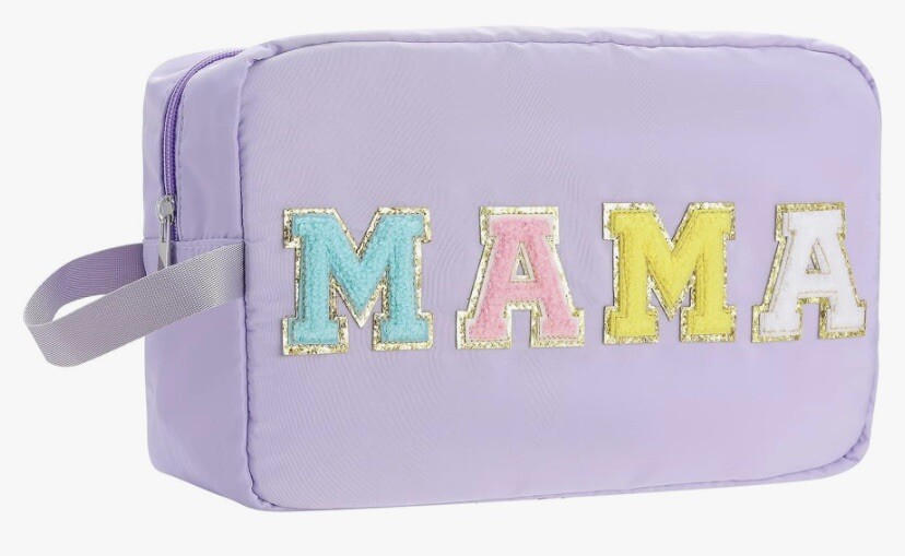 This makeup bag is absolutely adorable—the vibrant purple color and soft chenille "MAMA" letters make it so cute and stylish. The zipper glides smoothly, and the spacious interior fits all my essentials. Perfect for travel or everyday use, and it feels high-quality. A fantastic gift for any mom who loves a pop of personality!