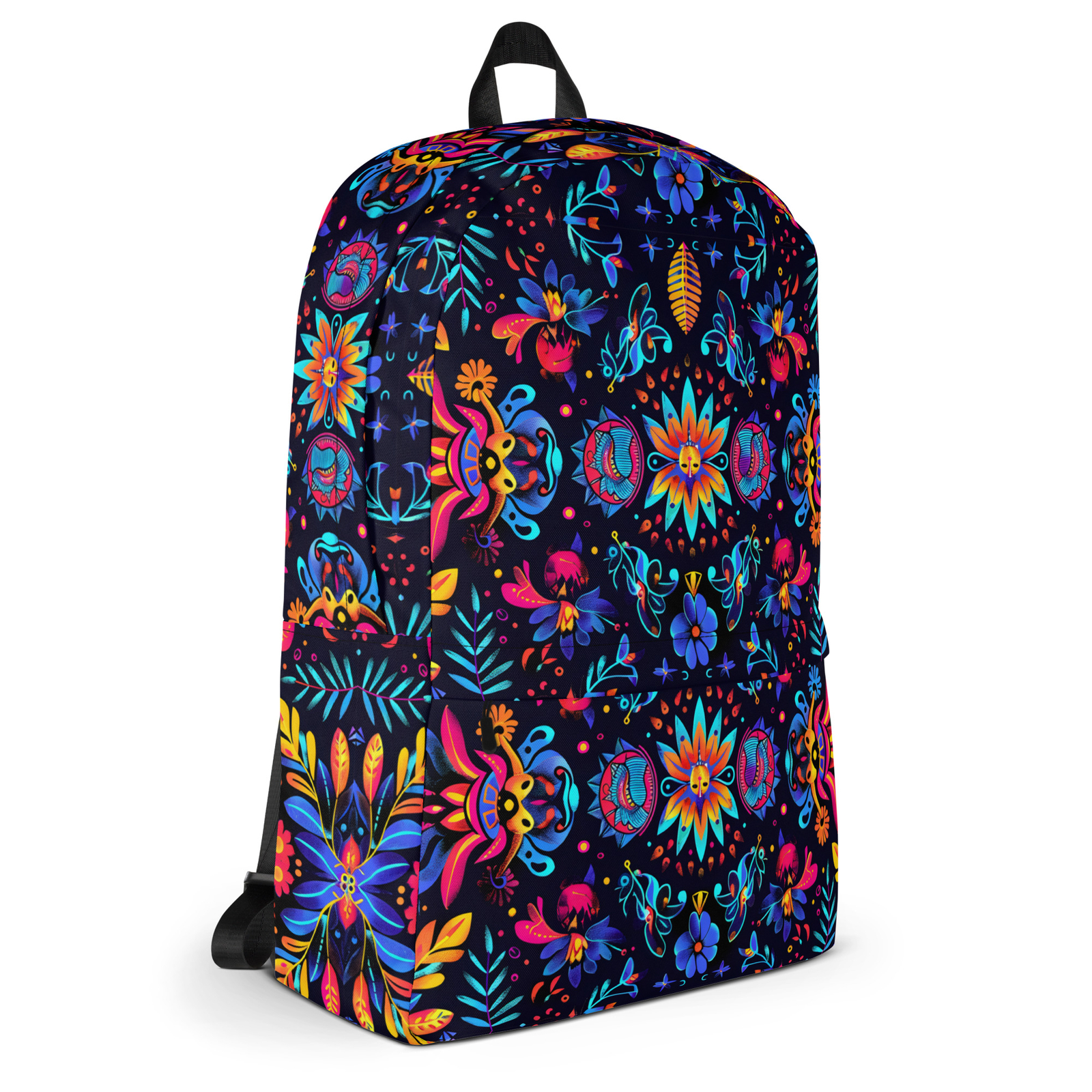 This medium size backpack is just what you need for daily use or travel activities! The pockets (including one for your laptop) give plenty of room for all your necessities, while the water-resistant material will protect them from the weather. • Made from 100% polyester • Dimensions: H 16⅞" (42cm), W 12¼" (31cm), D 3⅞" (10cm) • Fabric weight: 9 oz./yd.² (305 g/m²) • Maximum weight limit: 44lbs (20kg) • Water-resistant material • Large inside pocket with a separate compartment for a 15” laptop, front pocket with a zipper, and a hidden pocket with zipper on the back of the bag • Top zipper has 2 sliders with zipper pullers • Silky lining, piped inside hems, and a soft mesh back • Padded ergonomic bag straps from polyester with plastic strap regulators