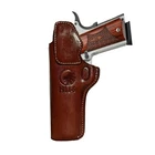 Leather Inside the waist band IWB HOLSTER for 1911 5" with a comfort tab on the back to keep the handle from rubbing against the side Experience the superior craftsmanship of our Leather IWB Holster, designed specifically for right-handed users. This handmade leather holster is perfect for Colt 1911 models and compatible with most 1911-style handguns, including Kimber, S&W, Sig Sauer, Remington, Ruger, and more. Whether you need an IWB holster for a 4.25" or 5" barrel, this versatile and durable holster ensures comfort and concealment for your daily carry needs. VERSATILE FIT for 1911 STYLE HANDGUNS: This Leather IWB (Inside the waistband) Holster is designed to fit a range of 1911-style handguns, including Colt 1911 and models from Kimber, S&W, Sig Sauer, Remington, Ruger, and more. Compatible with 1911 IWB holster 5 inch and 4.25" barrel sizes. HANDMADE LEATHER CRAFTSMANSHIP: Each holster is handcrafted from high-quality genuine leather, ensuring durability and a classic appearance. The leather molds to your gun for a custom fit that improves with use. COMFORTABLE IWB DESIGN: The Inside the Waistband (IWB) design provides discreet and comfortable carry. Ideal for concealed carry, this IWB 1911 holster keeps your firearm securely against your body while offering easy access. RIGHT-HANDED DRAW: Designed for right-handed users, this IWB 1911 holster ensures optimal draw speed and ease of use. Perfect for right-handed shooters looking for a high-quality holster. FITS FULL-SIZE .45 ACP: Designed to accommodate full-size .45 ACP 1911 models, including both 4.25" and 5" barrels. This IWB holster 45 ACP full size offers versatility for various 1911 models. VERSATILE COMPATIBILITY: Compatible with most standard belts and various carry positions, providing flexibility and adaptability for your personal carry style. EASY BREAK-IN PROCESS: The leather holster is designed for an easy break-in, ensuring a smooth draw and secure fit with minimal effort. Custom fit any full size 1911 pistol including: Colt S&W Sig Kimber Armscor Norinco Springfield Ruger Remington and similar models 1911 iwb holster 5 inch, colt 1911 holster, iwb 1911 holster, iwb 1911 holster 5 inch right hand, iwb holster 1911, iwb holster 45 acp full size, iwb 1911 holster 4.25 Please also visit our store for more options: Massimo Gun Leather Shop Premium cowhide leather Fits belts up to 1,5 inch wide Hand molded fit Open Muzzle Right hand LEATHER HOLSTER BREAK-IN One of the side effects of wet molding is a consolidation of the leather fibers, which “shrinks” the holster. If the fit is too tight the first time when holstering your firearm, don’t force it. If you do force the firearm into the holster, it may be very difficult to remove. Instead, follow these simple steps to break in your new holster using a process called blocking: 1- 1- Please the unloaded firearm in a plastic freezer bag, or cover it in 2-3 layers of plastic kitchen wrap. Do not cover the grip. 2- 2- Insert the bagged/wrapped firearm slowly into the holster, gently twisting it side-to-side to minimize tearing of the bag/wrap. 3- 3- Once the firearm is completely seated in the holster, twist it about 1/16” in both directions 6-12 times. 4- 4- Allow the bagged/wrapped firearm to sit in the holster overnight or about 8-10hrs. 5- 5- Remove the firearm from the holster and remove the bag/wrap from the firearm. 6- 6- Insert the unloaded firearm into the holster, which should now be snug but not loose. If it is still too tight, repeat the above steps until the holste r is broken in to your satisfaction.