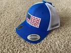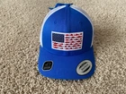 Columbia PFG Fish Flag Snapback Cap Adult Unisex Adjustable snapback closure High crown fit Mesh back Shell: 100% cotton Mesh back: 100% polyester Lining: 100% polyester Color - blue/white (mesh) Columbia PFG