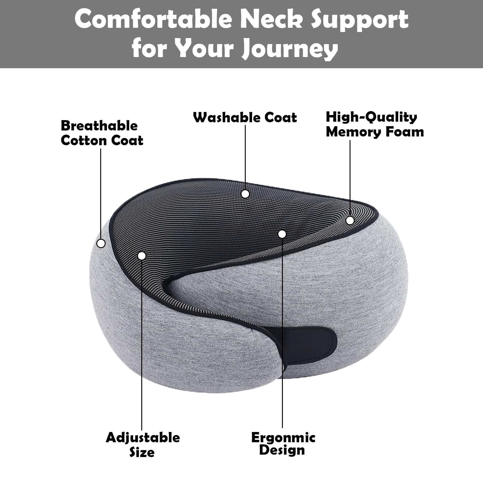 Ultimate Travel Sleep Kit: Machine-Washable Neck Pillow with Compression Bag, Eye Mask & Earplugs Transform your journeys into restful escapes with this all-in-one sleep solution designed for airplanes, trains, and long-haul road trips. Crafted for travelers who value hygiene and convenience, every detail prioritizes comfort and practicality. Key Features 1. Hygienic Machine-Washable Design The neck pillow’s removable cover effortlessly zips off for hassle-free cleaning. Made from quick-drying breathable fabric, it withstands frequent washing without losing softness—ideal for multi-city trips where freshness matters. 2. Space-Saving Compression System Included compression bag shrinks the pillow to half its size: Pre-roll: 12” x 8” (full fluffiness) Post-compression: 6” x 5” (fits carry-on pockets) Integrated luggage strap attaches securely to suitcases or backpacks. 3. Complete Sleep Sanctuary Kit Your package includes: Ergonomic Neck Pillow: Contoured to prevent chin drop during upright naps Adjustable Eye Mask: Light-blocking wings with padded nose bridge Noise-Reducing Earplugs: Reusable silicone pair with carrying case Drawstring Storage Pouch: Dual-layer fabric protects items between uses Optimized for Real Travel Challenges Quick-Dry Fabric: Wicks moisture during tropical layovers or sudden spills No-Zip Pressure Points: Smooth seams prevent face marks during sleep Universal Fit: Pillow height adjusts via hidden toggle (fits teens to adults) Multi-Scenario Usage Airplane Mode: U-shaped pillow supports neck during turbulence Train/Bus Mode: Flat-pack as lower back cushion on stiff seats Hotel Mode: Combine eye mask + earplugs for jet lag recovery Cleaning & Maintenance 1. Remove cover via side zipper 2. Machine wash cold (gentle cycle) 3. Air-dry overnight (pillow core stays odor-free) 4. Store earplugs in case to preserve shape Why Travelers Love This Kit Complete Package: No need to buy separate accessories Last-Minute Ready: Pre-packed for spontaneous trips Discreet Design: Neutral colors blend with any luggage 【360º Ergonmic Design】:This neck pillow features a Velcro closure for customized adjustments. Holds your chin firmly in place and ensures that your neck is perfectly aligned with your spine. Say goodbye to post-flight neck and cervical pain 【Travel Neck Pillow】:Travel Travel Pillow With Chin Wrap keep you in an upright position and relieve neck and Relieve Neck, Shoulder and Back Discomfort Caused By Car and Airplane Trave 【Lightweight & Packable】:This neck pillow compresses to 60% of its size, and fits easily into a mesh carry-on bag.,Perfect for travel and adventure, it comes with a travel case to ensure compatibility with small headphones and earbuds, making it a must-have travel accessory 【Vacuum Packaging】:Please let it sit foave ar a while after opening to let the sponge bounce back. It is normal to hn odor. Please leave it in a ventilated place to dry 【Wide Range of Uses】:This Travel Pillow Provides Extra Support and Protects Your Neck From Pain On Airplanes, Cars, Trains or Buses