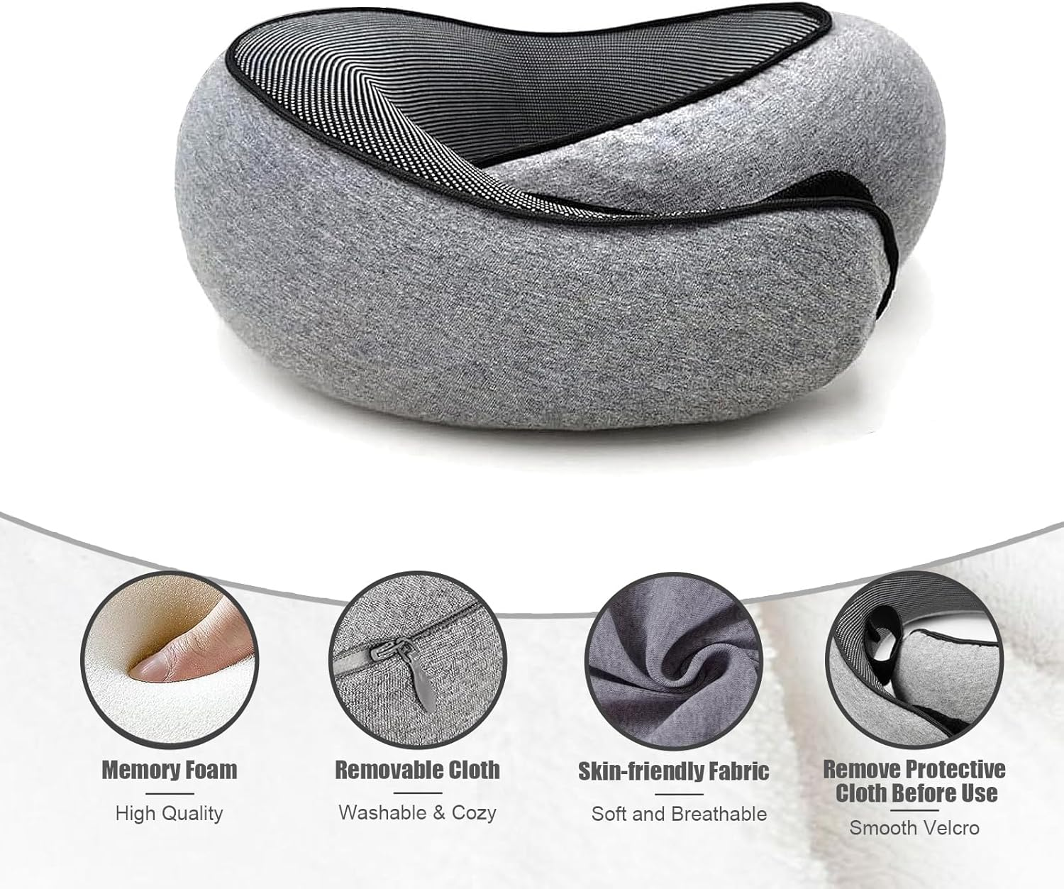$ 13.2Memory Foam U Shaped Travel Sleep Pillow Neck Support Head Back Cushion Gray