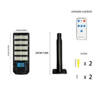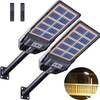 Commercial 99000000LM LED Outdoor Dusk to Dawn Solar Street Light Road Area Lamp Description : Integrated Design: Integrating 320pcs 2835LED light beads into a double-sided tempered glass solar panel can also be charged at night, achieving longer lighting time. Using high-capacity and long-life lithium 3500mAH batteries to ensure the service life of the product, enable it to work normally on 2-3 consecutive rainy and cloudy days. Three Working Modes: This solar street light has 3 working modes. Mode 1. Motion Sensor: At night, 30% brightness lighting works. When a person is detected passing by, it switches to 100% brightness, and 30 seconds after the person leaves, 30% brightness is restored. Mode 2. 2/4H mode: Timer 2/4 hours for 100% brightness operation, then automatically switch to mode 1. Mode 3. Keep working at 100% brightness all night without sensing function. Multi-Function Remote Control: Before using it for the first time, insert the battery (2 * AAA, packaging does not include the battery) into the remote control. The remote control distance is 8-15 meters, and it must be facing the remote control receiver of the light, otherwise the remote control is not sensitive. IP65 Waterproof: Adopting high-quality tempered glass and ABS plastic as the main structure, this solar floodlight has good rust prevention and anti-corrosion functions; IP65 waterproof, no need to worry about the impact of heavy rain and snow. Easy Installation: Outdoor solar lights are suitable for wall-mounted and pole-mounted (package includes 0.5m pole). The recommended installation height is 8-16 feet, and the lighting range is about 1600 square feet. They are ideal for garages, entrances, patios, etc. Specification : Product Name: Solar Street Light Road Beam Angle: 120° Charging Time: 6-8H Working Time: 12H Light Source Type: LED Q’ty of LEDs: 320Pcs LED Chip: SMD2835 Chip Waterproof Level: IP65 Color Temperature: 6500K Color Rendering Index(Ra): 80 Power Source: Solar Powered Battery Type: Lithium Battery Working Temperature: -22℉-140℉ Material: ABS Engineering Material + Solar Photovoltaic Glass Solar Panel: Double-sided Monocrystalline Silicon Solar Pphotovoltaic Panel Recommended Installation height: 3-5m(9.8-16.4ft) Control Mode: Light Control + Motion Sensor + Timing Remote Control Application: Outdoor, Street, Road, Garden, Warehouse, Park, Stadiums, Farm, etc Package Included: 1/2/4/6pcs x Solar Street Light 1/2/4/6pcs x Pole 1/2/4/6pcs x Remote Control 1/2/4/6pcs x Screw Package 1/2/4/6pcs x User Manual