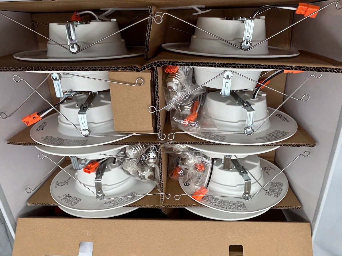 Commercial Electric 5/6" LED Recessed Retrofit Light Trim Selectable CCT 12-Pack About This Product Upgrade your home’s lighting with the Commercial Electric 5/6 in. Integrated LED Recessed Retrofit Downlight , designed to modernize outdated can lights with efficient LED technology and clean recessed styling. This 12-pack offers incredible value while delivering long-lasting brightness and customizable light tone for any room. Each fixture features five selectable color temperatures ranging from warm white to daylight, allowing you to match the lighting to your décor, activity, or preference. The CCT switch on the back of each trim makes it easy to test and choose the perfect brightness temperature before installation — ensuring you never settle for the wrong lighting tone again. Using just 9.5 watts , these downlights produce 780 lumens of crisp light — equivalent to a 75-watt BR30 bulb — while costing as little as $1.53 per year to operate. Rated for 50,000 hours of use, they offer exceptional lifespan and performance for kitchens, hallways, living rooms, basements, and more. Installation is simple using the included E26 medium base adapter , and compatibility with most 5 in. and 6 in. housings makes them a versatile upgrade for nearly any recessed setup. Key Features & Highlights Selectable Color Temperature: Choose from 2700K, 3000K, 3500K, 4000K, or 5000K using the rear-mounted CCT switch. High Efficiency: Produces 780 lumens using only 9.5 watts , replacing 75W incandescent bulbs. Dimmable Performance: Compatible with most LED dimmer switches for adjustable brightness. Energy Star Rated: Meets high efficiency and performance standards for long-term savings. Wide Housing Compatibility: Fits most 5 in. and 6 in. recessed cans , includes E26 socket adapter for easy retrofit installation. Wet Rated: Safe for use in bathrooms, kitchens, laundry rooms, or covered outdoor applications. Long Lifespan: 50,000-hour rating (≈34 years at 4 hours/day) provides years of maintenance-free lighting. Excellent Color Accuracy: 90 CRI ensures vibrant, true-to-life color rendering. Cost Saving: Estimated operating cost of only $1.53 per year based on average use. 12-Pack Value: Ideal for whole-home upgrades, remodels, or multi-room projects. We take great care to inspect all items and ensure they are accurately described. Should you have any issues with your purchase, please let us know immediately. We are committed to resolving any concerns promptly and to your satisfaction. Our small business truly appreciates your patronage. 🔍 Cassini Keyword Footer: Commercial Electric 5/6 inch LED recessed light, retrofit LED downlight 12 pack, selectable CCT recessed trim, dimmable LED ceiling light, 780 lumen downlight, 2700K 5000K LED light, E26 can light retrofit, wet rated recessed light, energy star LED fixture, 50,000 hour LED light, Commercial Electric LED trim