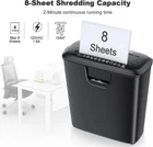 Bonsaii Paper Shredder for Home Use, 8-Sheet StripCut Home Office Shredder, CD/Credit Card Shredder Machine with Overheat Protection, 3.4 Gallons Wastebasket Size: 8 Sheet Cut Type Strip Cut Brand bonsaii Capacity 3.4 Gallons Special Feature Automatic Start Stop, Overheating Protection Standard Sheet Capacity 8 About this item ▸8-Sheet Shredding Capacity◂Home shredder can shred up to 8 sheets of paper at a time, and can shred credit cards/CDs/DVDs/and other important documents to meet your other needs. ▸Overheat Protection◂Home office shredder can run continuously for 2 minutes. When the run time is exceeded, the overheat LED will flash red. Allow the shredder to cool for 15 minutes before using again. ▸Easy to Use◂Small paper shredder features a safe start mode and manual reverse jam clearing. When the machine jams paper, you can easily solve the paper jam problem by pressing the FWD button. ▸Suitable for Home Office Use◂The size of the confetti is 15/64 inches, which can protect your privacy. The 3.4 gallon bin can meet the daily needs of the family. ▸Duality tested & 1-Year Warranty◂As part of Bonsaii quality inspections, we test every shredder before shipping it, which means you may see some paper shreds from the testing. Bonsaii provides 1-Year warranty for our products. ▸Important Note◂Do not spray or keep any aerosol products in or around the shredder. (Item does not ship to Miami&Doral, FL), have any problem please contact us !