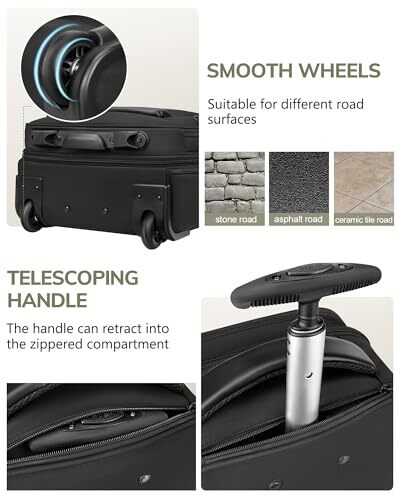 Return Policy Fast Delivery Trusted seller Carry on Luggage with Wheels, Multi-functional Airline Approved Underseat Personal Item Bag, 16" Lightweight Overnight Weekend Travel Business Carry-On Rolling Suitcase for Women Men, Black Product Description TSA Approved: This sleek underseat carry on luggage with wheels, measuring 16 x 13 x 7.5 inches (not including wheels) and weighing just 4.18 lbs, fits effortlessly under most seats or in overhead bins. Opens 180° for easy TSA checks, making boarding smoother. This rolling personal item bag combines convenience and style Versatile Storage: This wheeled carry on luggage is ideal for short trips. The main compartment opens from the side similar to that of large suitcases, making packing easier. Buckled straps in the main compartment keep clothes in place, and the large wet-dry pocket prevents toiletries from leaking. It also has a padded compartment for laptops up to 15.6 inches. Double zippers with lock holes keep your items secure Easy to Operate: Our lightweight rolling suitcase features a retractable aluminum handle and smooth rubber wheels. (No shoulder strap included). The handle can be easily adjusted to two different heights. When not in use, it can be tucked into a zippered compartment. A leather handle offers handheld carrying, and the reinforced bottom adds durability Convenient Design: The front zippered pocket provides easy access to frequently used items such as tickets, passports, wallets, and cards. Two zippered side pockets can hold items like umbrellas and water bottles, allowing you to quickly find what you need without rummaging through crowded compartments. Additionally, the luggage strap on the back can secure the under seat luggage to a larger suitcase, freeing up your hands during check-in Excellent Craftsmanship: The underseat carry on bag is made of sturdy polyester, with a fabric that is both waterproof and scratch-resistant, while also being lightweight. This roller travel bag features a minimalist design, striking a perfect balance between functionality and aesthetics. It’s a thoughtful gifts for casual travelers, business professionals, friends, or couples. Additionally, it’s the perfect choice for short trips, weekend getaways, or business travel Shipping Returns Payment Shipping Shipping is FREE to all addresses other than APO/PO boxes in the lower 48 states. All our stock ships from US-based warehouses. Shipped via USPS or UPS (depending on location and package weight) Unless stated otherwise, all orders will ship within 24-72 hours of your payment being processed. Check our feedback to see the great reviews of FAST shipping we offer. Returns Seller does not accept returns Payment We currently accept payment via eBay managed payments only. Once payment is cleared, we will dispatch your shipment within 1-3 business days. Please refer to the "Shipping" tab for more information regarding shipping speed to your destination.